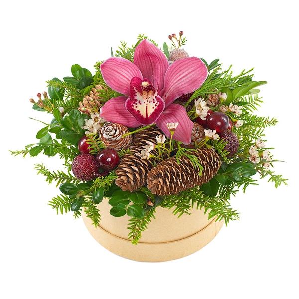 La våre profesjonelle designe en søt vinterdekorasjon i eske. Ønsk god advent til noen du er glad i, eller kjøp den hjem og pynt festbordet. Vinterarrangementet er unikt designet for deg og settes sammen ut fra sortiment og sesong. Hver blomst er nøye utvalgt for å skape en dekorasjon like vakker som rimelig. Blomstergaven leveres av en lokal florist.